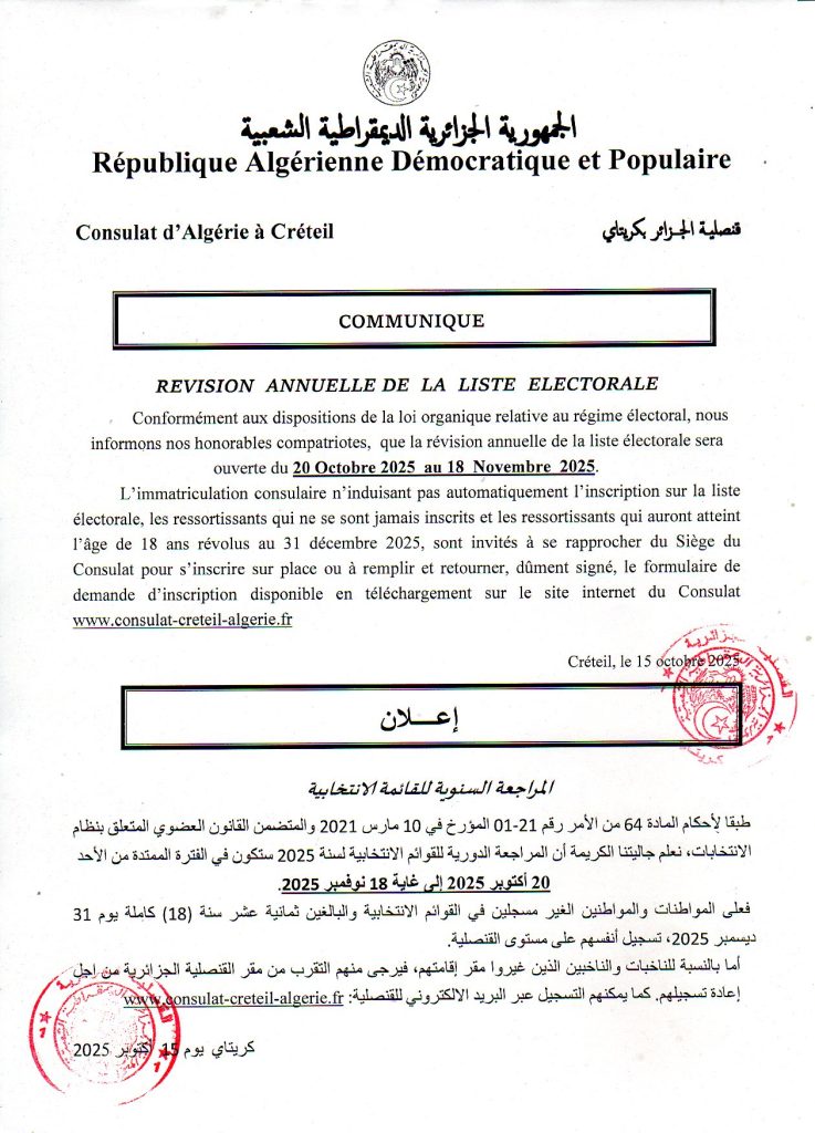 RÉVISION ANNUELLE DE LA LISTE ÉLECTORALE